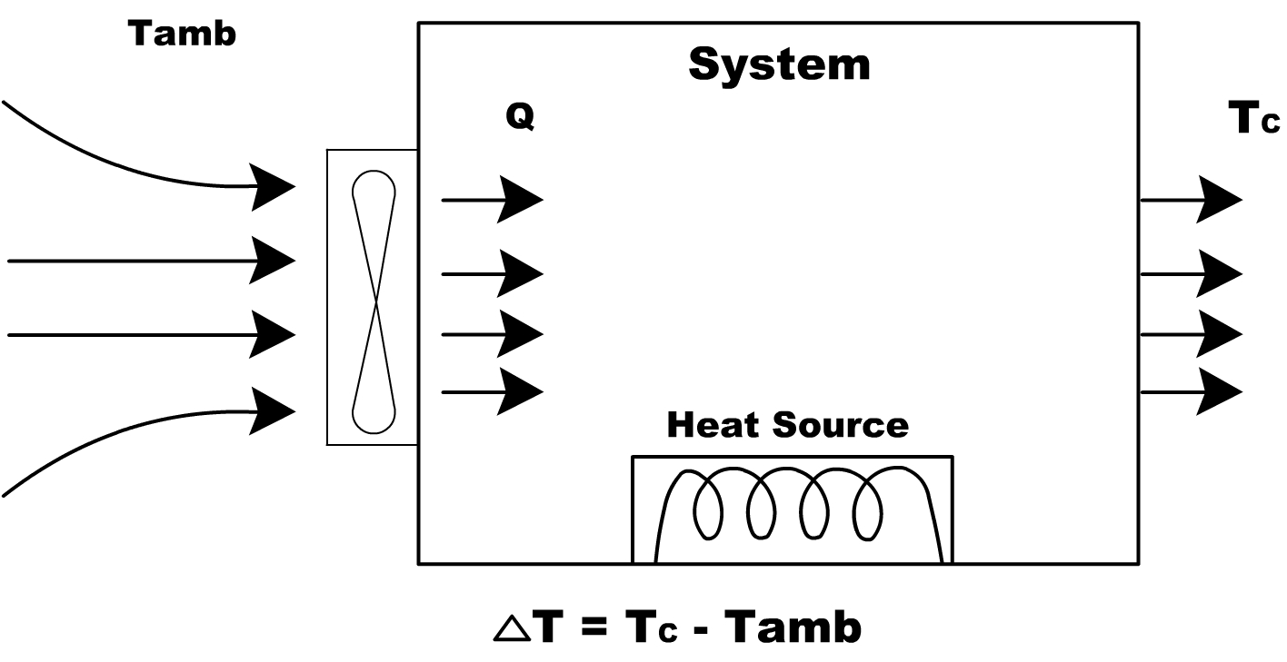 在选用风扇之前,首先对系统的散热风量预估,利用热力学原理分析系统的散热,得到如下公式: